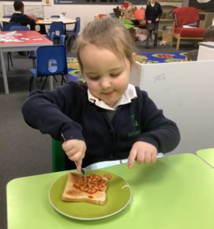 This week in Discovery Time, the children in EYFS have been making beans on toast in our DT area. The children worked in pairs to carefully follow the pictorial and written instructions. As part of our oracy learning, the children then taught the next pair how to make their beans on toast, carefully explaining the instructions in clear sentences. They then enjoyed eating their beans on toast, demonstrating their excellent knife and fork skills!